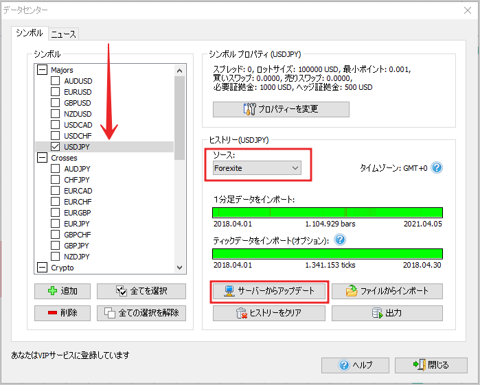 なお、860のシンボル、より優れたデータ品質、9つの主要通貨のヒストリカル・ニュース、ティック・データ、フローティング・スプレッドなど、さらに多くの機能をご利用いただくには、スタンダードまたはVIP購読のいずれかをお選びください。