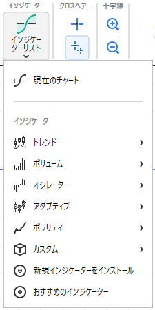 各ローソク足に関するすべての必要な情報は、データウィンドウパネルに反映されます。このパネルは、チャートの左側にあります。バーの日付、時間、始値、終値、高値、安値は、マウスでポイントするだけで表示されます。さらに、ボリューム、指標、バーのインデックスの値も表示されます。
