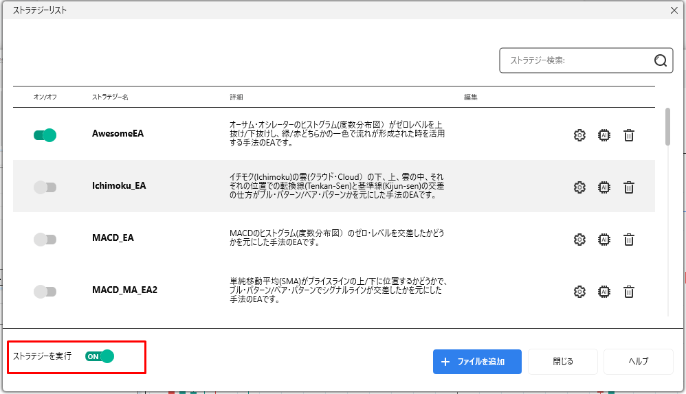 エキスパートアドバイザーは、ストラテジーのルールに基づいて自動的に取引を開始し、終了します。