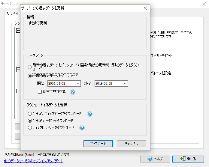 ティックデータを使ってテストが行えます。 (ティックデータはVIPデータサービス購入者へのみ配信しています)