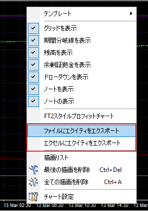 利益チャートをファイルやエクセルにエクスポートして、さらに分析することができます。チャートの任意の場所で右クリックし、「純資産をファイル/エクセルにエクスポート」を選択するだけです。