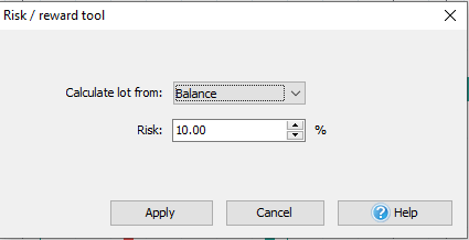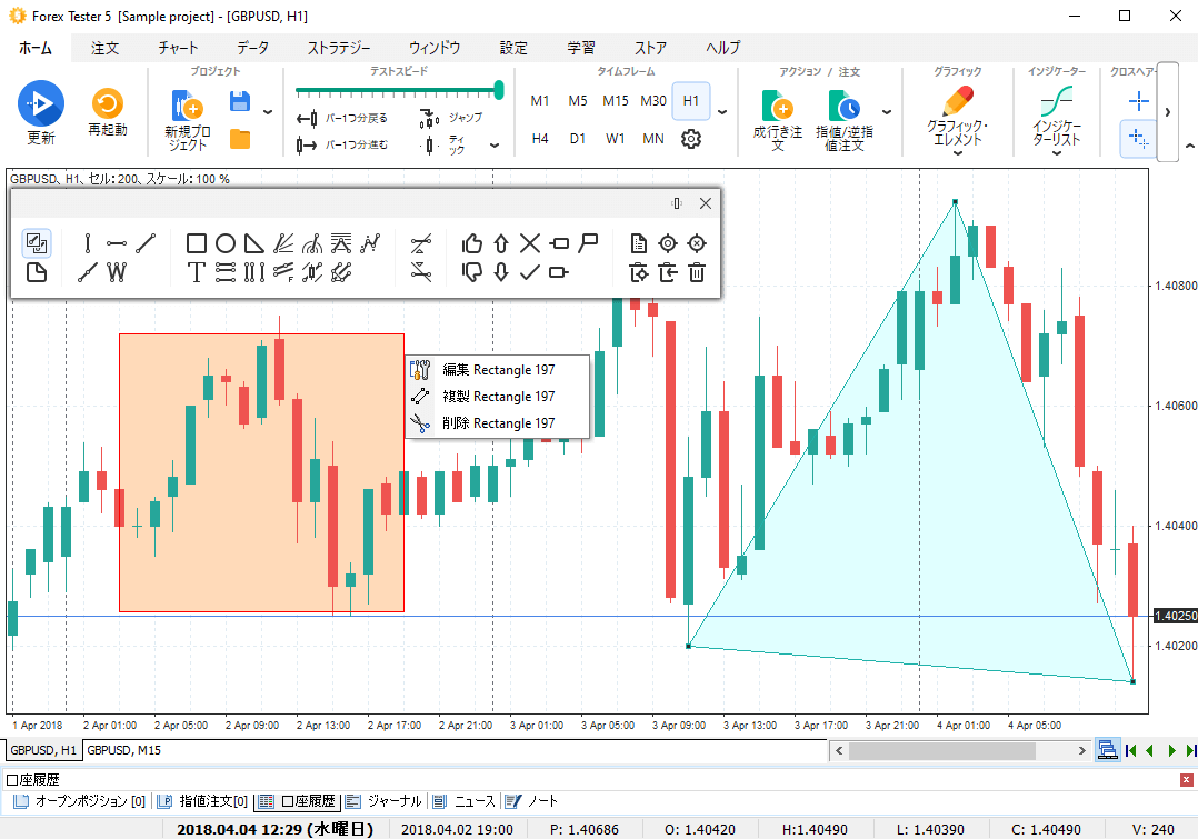 名称、スタイル、ロット計算のリスクなど、ツールのいくつかのパラメータを変更するには、図の境界線または角をマウスの右ボタンでクリックし、「編集」を選択してください。