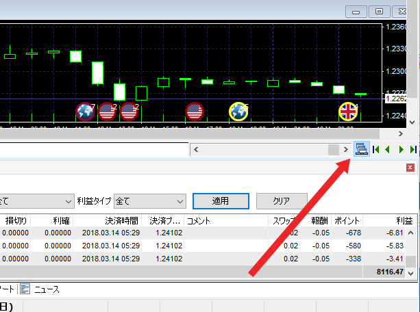 ロケーション: あなたはそれぞれの国が属する国旗のマークをニュースに応じてチャートの一番下に見つけることができます。そして、経済カレンダーが「アカウント履歴タブ」の隣の追加タブに表示されます。