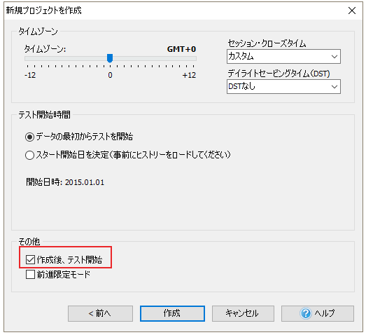 新しいForex Testerバージョンでは、新しいプロジェクトを作成した後に[テストの開始]ボタンをクリックする必要はありません。 プロジェクト作成フォームの最後のウィンドウでテストをすぐに開始できます。