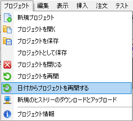 FT4では、新しいプロジェクトを作成せずに、選択した日付からプロジェクトを再開できます。